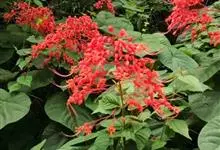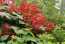 赪桐 Sweet)是唇形科、大青属灌木,高1-4米,叶片圆心形,顶端尖或渐尖,基部心形,边缘有疏短尖齿,表面疏生伏毛,二歧聚伞花序组成顶生,大而开展的圆锥花序,花序的最后侧枝呈总状花序,花萼红色,…全部>>