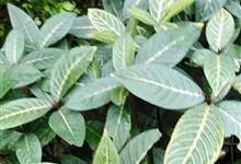 银脉爵床,又名斑马花、斑马爵床,爵床科单药花属植物。茎直立、方形、植株粗壮,略带肉质。叶对生,卵形或椭圆状卵形,叶子长约15cm~20cm,宽约10cm;叶端尖,叶片深绿色有光泽,…全部>>