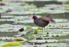 黑水鸡:是鹤形目、秧鸡科的鸟类,共有12个亚种。中型涉禽,体长24-35厘米。嘴长度适中,鼻孔狭长;头具额甲,后缘圆钝;嘴和额甲色彩鲜艳。翅圆形,第2枚初级飞羽最长,或第2枚和第3枚初级飞羽等长,…全部>>