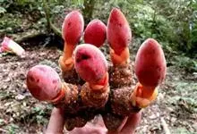 红冬蛇菰是蛇菰科蛇菰属的草本植物。株高2.5~9厘米;根茎苍褐色,扁球形或近球形,呈脑状皱褶;花茎长2-5.5厘米,淡红色;鳞苞片聚生于花茎基部,呈总苞状,花雌雄异株,花序近球形或卵圆状椭圆形,…全部>>