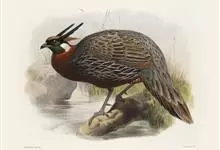 红腹角雉属于鸡形目雉科,雄鸟体羽及两翅主要为深栗红色,满布具黑缘的灰色眼状斑,下体灰斑大而色浅。雌鸟上体灰褐色,下体淡黄色,杂以黑、棕、白斑。全部>>