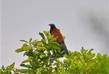 褐翅鸦鹃,是鹃形目鸦鹃科鸦鹃属的鸟类。褐翅鸦鹃的身体为黑色;头颈和胸带蓝紫色金属光泽并具黑亮的羽干纹,下胸至腹部泛金属绿光泽;两翼和肩部为棕栗色,外侧飞羽具暗色羽端,尾羽闪铜绿色光泽;虹膜赤红色,…全部>>