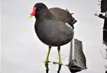 黑水鸡:是鹤形目、秧鸡科的鸟类,共有12个亚种。中型涉禽,体长24-35厘米。嘴长度适中,鼻孔狭长;头具额甲,后缘圆钝;嘴和额甲色彩鲜艳。翅圆形,第2枚初级飞羽最长,或第2枚和第3枚初级飞羽等长,…全部>>