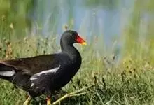 黑水鸡:是鹤形目、秧鸡科的鸟类,共有12个亚种。中型涉禽,体长24-35厘米。嘴长度适中,鼻孔狭长;头具额甲,后缘圆钝;嘴和额甲色彩鲜艳。翅圆形,第2枚初级飞羽最长,或第2枚和第3枚初级飞羽等长,…全部>>