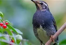 白眉地鸫是鸫科、地鸫属中型鸟类,体长21-24厘米。雄鸟通体暗蓝灰色或黑灰色,腹中部和尾下覆羽白色具长而粗著的白色眉纹,尾亦为黑灰或蓝灰色,外侧尾羽具宽的白色尖端。雌鸟上体橄榄褐色,下体皮黄白色,…全部>>