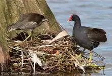 黑水鸡:是鹤形目、秧鸡科的鸟类,共有12个亚种。中型涉禽,体长24-35厘米。嘴长度适中,鼻孔狭长;头具额甲,后缘圆钝;嘴和额甲色彩鲜艳。翅圆形,第2枚初级飞羽最长,或第2枚和第3枚初级飞羽等长,…全部>>