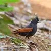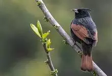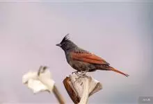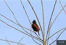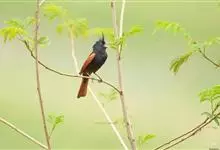 凤头鹀:属小型鸣禽,体重21-31克,体长134-175毫米。以头顶的细长羽冠为特征,雄鸟全身几乎均为黑色具蓝色光泽,两翅和尾以及尾上覆羽栗红色。雌鸟具短的褐色羽冠,上体暗橄榄褐色,…全部>>