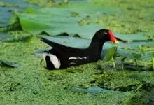 黑水鸡:是鹤形目、秧鸡科的鸟类,共有12个亚种。中型涉禽,体长24-35厘米。嘴长度适中,鼻孔狭长;头具额甲,后缘圆钝;嘴和额甲色彩鲜艳。翅圆形,第2枚初级飞羽最长,或第2枚和第3枚初级飞羽等长,…全部>>