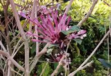烟火树 Merr.)是唇形科、大青属常绿灌木或小乔木,株高可达4米。幼枝方形,墨绿色。叶对生,长椭圆形或披针形,先端尖,全缘或波状缘。纸质,叶背暗紫红色。聚伞状圆锥花序,顶生,小花多数,聚生成团,…全部>>