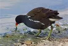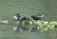 黑水鸡:是鹤形目、秧鸡科的鸟类,共有12个亚种。中型涉禽,体长24-35厘米。嘴长度适中,鼻孔狭长;头具额甲,后缘圆钝;嘴和额甲色彩鲜艳。翅圆形,第2枚初级飞羽最长,或第2枚和第3枚初级飞羽等长,…全部>>