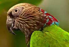 鹰头鹦鹉:鹰头鹦鹉体长35厘米,体重190-277克。额头和顶冠具柔和的白色,眼先深褐色,枕部和头部两侧有棕色羽毛,并具有柔软的白色条纹, 后颈有长长的暗红色羽毛并镶有蓝边,有2个亚种,是典型的攀禽,…全部>>