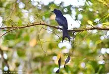 发冠卷尾是中型鸟类,体长28-35厘米。通体绒黑色缀蓝绿色金属光泽,额部具发丝状羽冠,外侧尾羽末端向上卷曲。栖息于海拔1500米以下的低山丘陵和山脚沟谷地带,多在常绿阔叶林、次生林或人工松林中活动。…全部>>
