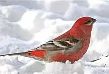 松雀:体重48-57克,体长192-213毫米。是一种体型较大而尾长的雀。嘴厚而带钩,两道明显白色翼斑与近黑的翼成对比。成年雄鸟深粉红色,具别致的脸部灰色图纹。成年雌鸟似雄鸟但橄榄绿色取代粉红色。…全部>>