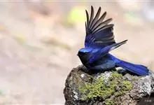 大仙鹟:体重34-38克,体长20-2厘米。是一种体型较大的深色鹟。雄鸟上体蓝色,头顶、颈侧条纹、肩块及腰部辉蓝,下体黑色。雌鸟橄榄褐色,头顶蓝灰,颈侧具闪辉浅蓝色块,喉具皮黄色三角形块斑。…全部>>