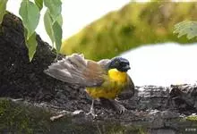 黄喉噪鹛体型略小,顶冠蓝灰色,特征为具黑色的眼罩和鲜黄色的喉。上体褐色,尾端黑色而具白色边缘,腹部及尾下覆羽皮黄色而渐变成白色。黄喉噪鹛隐匿于亚热带常绿林和浓密灌丛,于地面杂物中取食,喜食昆虫,…全部>>