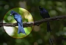 发冠卷尾是中型鸟类,体长28-35厘米。通体绒黑色缀蓝绿色金属光泽,额部具发丝状羽冠,外侧尾羽末端向上卷曲。栖息于海拔1500米以下的低山丘陵和山脚沟谷地带,多在常绿阔叶林、次生林或人工松林中活动。…全部>>