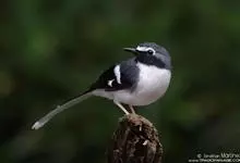 白额燕尾是雀形目鸫科燕尾属鸟类,又叫水鸦雀、白冠燕尾、黑背燕尾。前额至头顶具白斑,头余部、颈、背、喉及胸黑色,腰、腹部及尾下覆羽白色,两翼黑色且具白色翼斑;尾上覆羽黑色并具白色端斑,中央尾羽最短,…全部>>