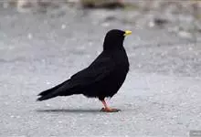 黄嘴山鸦是鸦科、山鸦属鸟类,体长38-42厘米。体形较细弱,黄色的嘴细而下弯,嘴亦较短。雌雄羽色相似。全身羽毛黑色沾褐具绿色金属光泽,尤以两翅和尾较明显。幼鸟腿灰色,嘴上黄色较少。…全部>>
