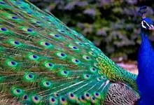 绿孔雀是鸡形目雉科孔雀属鸟类,别名:孔雀、越鸟、爪哇绿孔雀。雄性绿孔雀全身呈翠绿色,并反紫铜色光。头顶有一簇直立的冠羽,尾上复羽发达的约长1米,每羽端部有一个蓝色和翠绿色镶嵌的眼状斑,…全部>>
