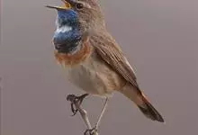 蓝点颏亦称“蓝喉歌鸲”,通称蓝靛颏儿。身体大小和麻雀相似,体长12-13厘米,体重17-18克。头部、上体主要为土褐色。眉纹白色。尾羽黑褐色,基部栗红色。颏部、喉部辉蓝色,下面有黑色横纹。下体白色。…全部>>