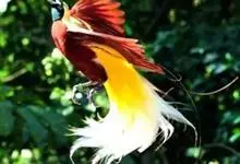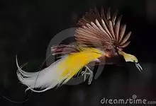 大极乐鸟是极乐鸟属中最大的鸟种。成年雄鸟体长可达到43厘米,雌性可达35厘米。雄鸟的额、颊、喉等墨绿色;头、颈黄色;上体暗赤栗色;腹部葡萄红色,胁部有长饰羽,其基部橙黄,中部黄色,…全部>>