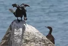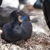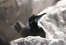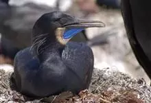 海鸬鹚:俗名乌鹈。典型的海上鸬鹚。体长约70厘米,体羽黑色具光泽。脸红色,与红脸鸬鹚甚似,但繁殖期冠羽较稀疏而松软,脸部红色不及额部但脸颊红色较多,幼鸟及非繁殖期的鸟脸粉灰,体型略小。虹膜蓝色;嘴黄…全部>>