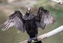 黑颈鸬鹚,中型水鸟,体长50~51厘米。繁殖期通体黑色,缀有深蓝色和蓝绿色光泽;肩、内侧次级飞羽及翅覆羽暗银灰色,羽缘黑色;头顶、头的两边和颈缀有少许白色丝状羽;枕部和后颈有轻微的短的羽冠。主要以鱼…全部>>