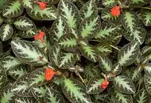 喜阴花是苦苣苔科喜阴花属的多年生草本植物。植株高可达10厘米,分枝多,茎部和叶上密生细毛;叶片大,卵形对生,边缘有锯齿,基部心形,叶面有凸起或皱褶;叶片主脉和侧脉为银白色,呈网纹状分布,…全部>>