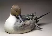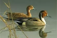 针尾鸭,是雁形目鸭科鸭属动物。体长约75厘米的大型戏水鸭,雄鸟头暗褐色,颈侧有白色纹路,向下与胸部白色相连,中央一对尾羽特别长;背灰色,有黑色细纹;翼镜绿色,胸腹白色,尾下覆羽黑色;雌鸟体羽大致为褐色,…全部>>