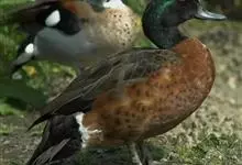 绿翅鸭是小型鸭类,体长37厘米,体重约0.5千克。嘴脚均为黑色。雄鸟头至颈部深栗色,头顶两侧从眼开始有一条宽阔的绿色带斑一直延伸至颈侧,尾下覆羽黑色,两侧各有一黄色三角形斑,在水中游泳时,极为醒目。…全部>>