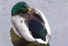 绿头鸭属游禽,大型鸭类。体长47-62厘米,体重大约1千克,外形大小和家鸭相似。雄鸟嘴黄绿色,脚橙黄色,头和颈辉绿色,颈部有一明显的白色领环。上体黑褐色,腰和尾上覆羽黑色,两对中央尾羽亦为黑色,且向…全部>>