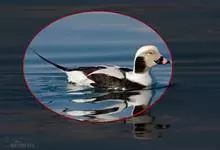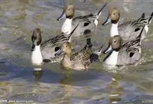 针尾鸭,是雁形目鸭科鸭属动物。体长约75厘米的大型戏水鸭,雄鸟头暗褐色,颈侧有白色纹路,向下与胸部白色相连,中央一对尾羽特别长;背灰色,有黑色细纹;翼镜绿色,胸腹白色,尾下覆羽黑色;雌鸟体羽大致为褐色,…全部>>