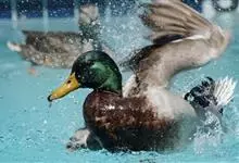 绿头鸭属游禽,大型鸭类。体长47-62厘米,体重大约1千克,外形大小和家鸭相似。雄鸟嘴黄绿色,脚橙黄色,头和颈辉绿色,颈部有一明显的白色领环。上体黑褐色,腰和尾上覆羽黑色,两对中央尾羽亦为黑色,且向…全部>>