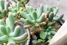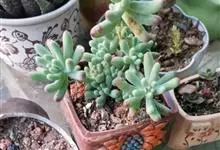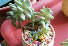 乙女心是景天科景天属的多肉植物,原产墨西哥。多年生亚灌木,茎叶肉质,株高5-30厘米。叶片簇生于茎顶,圆柱状,淡绿色或淡灰蓝色,叶先端具红色,叶长3~4厘米。花小,黄色。春秋为生长季,…全部>>