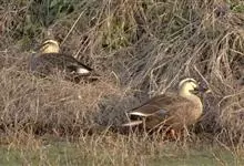 斑嘴鸭(谷鸭、黄嘴尖鸭、火燎鸭)雁形目 > 鸭科 > 鸭属 > 斑嘴鸭