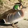 绿翅鸭是小型鸭类,体长37厘米,体重约0.5千克。嘴脚均为黑色。雄鸟头至颈部深栗色,头顶两侧从眼开始有一条宽阔的绿色带斑一直延伸至颈侧,尾下覆羽黑色,两侧各有一黄色三角形斑,在水中游泳时,极为醒目。…全部>>