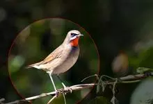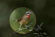 红点颏:是鸟纲、鹟科的鸣禽。又名西伯利亚歌鸲。体长14-17厘米,体重16-27克。雄鸟头部、上体主要为橄榄褐色。眉纹白色。颏部、喉部红色,周围有黑色狭纹。胸部灰色,腹部白色。雌鸟颏部、喉部不呈赤红色,…全部>>