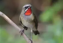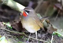 红点颏:是鸟纲、鹟科的鸣禽。又名西伯利亚歌鸲。体长14-17厘米,体重16-27克。雄鸟头部、上体主要为橄榄褐色。眉纹白色。颏部、喉部红色,周围有黑色狭纹。胸部灰色,腹部白色。雌鸟颏部、喉部不呈赤红色,…全部>>