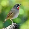 红点颏:是鸟纲、鹟科的鸣禽。又名西伯利亚歌鸲。体长14-17厘米,体重16-27克。雄鸟头部、上体主要为橄榄褐色。眉纹白色。颏部、喉部红色,周围有黑色狭纹。胸部灰色,腹部白色。雌鸟颏部、喉部不呈赤红色,…全部>>