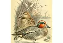 绿翅鸭是小型鸭类,体长37厘米,体重约0.5千克。嘴脚均为黑色。雄鸟头至颈部深栗色,头顶两侧从眼开始有一条宽阔的绿色带斑一直延伸至颈侧,尾下覆羽黑色,两侧各有一黄色三角形斑,在水中游泳时,极为醒目。…全部>>