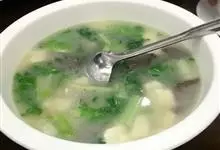 什锦豆腐汤是一道色香味俱全的名肴,属于粤菜系。此菜色彩悦目,清淡可口。将豆腐切片,香菇、油菜、笋、火腿切丝。锅内加高汤和熟猪油烧沸,放香菇丝、笋丝、油菜丝、火腿丝、盐,煮熟后捞出盛入汤碗内,将汤再烧…全部>>