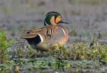 花脸鸭属小型鸭类,个体较绿翅鸭稍大,而较针尾鸭稍小。体长37-44厘米,体重0.5千克左右。雄鸭繁殖羽极为艳丽,特别是脸部由黄、绿、黑、白等多种色彩组成的花斑状极为醒目。胸侧和尾基两侧各有一条垂直白带,…全部>>