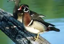 林鸳鸯是北美产颜色艳丽的小型树栖鸟。营巢于离地面15米的树洞中。体长约48厘米,雄雌均具独特羽冠。雄鸟羽冠有两条纵列的白色条纹,雌鸟羽毛上有白色眼环,体羽为煤灰色,幼雏于出壳的次日即可随雌鸟离巢,能…全部>>