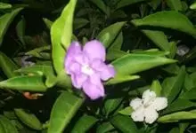鸳鸯茉莉,茄科鸳鸯茉莉属常绿灌木植物,高1米。茎皮深褐色;分枝力强;单叶互生纸质;花簇生,聚伞花序,花冠五裂花瓣锯齿,含苞时蘑菇状深紫色,花香浓郁;花期4-10月。鸳鸯茉莉花朵芳香,…全部>>