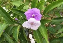 鸳鸯茉莉,茄科鸳鸯茉莉属常绿灌木植物,高1米。茎皮深褐色;分枝力强;单叶互生纸质;花簇生,聚伞花序,花冠五裂花瓣锯齿,含苞时蘑菇状深紫色,花香浓郁;花期4-10月。鸳鸯茉莉花朵芳香,…全部>>