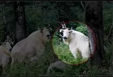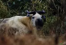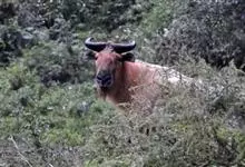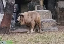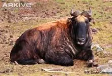 羚牛,偶蹄目牛科羚牛属哺乳动物,俗称扭角羚、野山牛、盘羊。其体形粗壮。尾短。吻鼻部隆起且裸露。前额隆起,毛短而蓬松。角基粗,由头顶长出后先向上升起,又突然翻转,靠近头部,复向外伸,然后又向后弯转,…全部>>