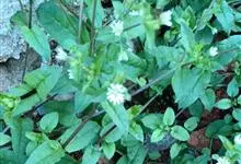鹅肠菜 Scop.),是石竹科繁缕属的多年生草本植物;须根;茎上升,多分枝,上部被腺毛;叶片卵形或宽卵形,顶端急尖,基部稍心形,边缘具毛,上部叶常无柄或具短柄,疏生柔毛;顶生二歧聚伞花序;花瓣白色,…全部>>