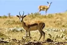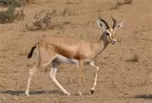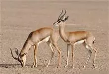 阿拉伯沙瞪羚:是偶蹄目、牛科、瞪羚属的食草动物。头尾长97厘米,身高约55-60厘米。雄性体重约为22千克,雌性性体重为18千克。雌雄都有犄角,雄性长达27厘米,雌性15厘米。体型较小。腿细长,…全部>>