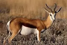 跳羚是哺乳纲、偶蹄目、牛科哺乳动物,属于中型的羚羊。四肢细长;背面毛色黄褐,臀部及其背面、腹部、四肢内侧均为白色,在身体两侧背腹之间 有一红褐色条带;背部中央有1条纵向的由皮肤下凹而形成的褶皱,…全部>>