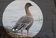 灰雁:体长70-90厘米,翼展147-182厘米,体重2.5-4千克,寿命17年。体大而肥胖。嘴、脚肉色,上体灰褐色,下体污白色,飞行时双翼拍打用力,振翅频率高。脖子较长。腿位于身体的中心支点,…全部>>
